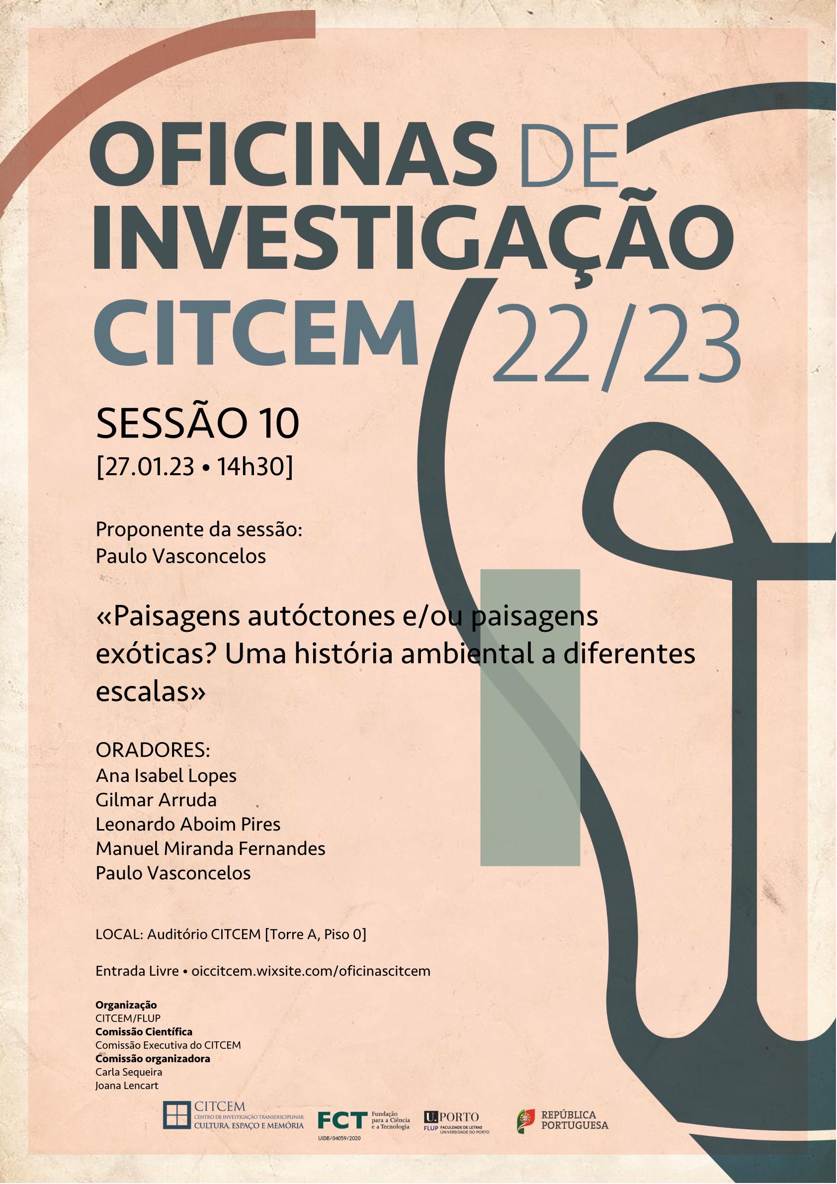 Eventos: 10th SESSION OIC 2022/23 “Native and/or exotic landscapes? An environmental history at different scales”