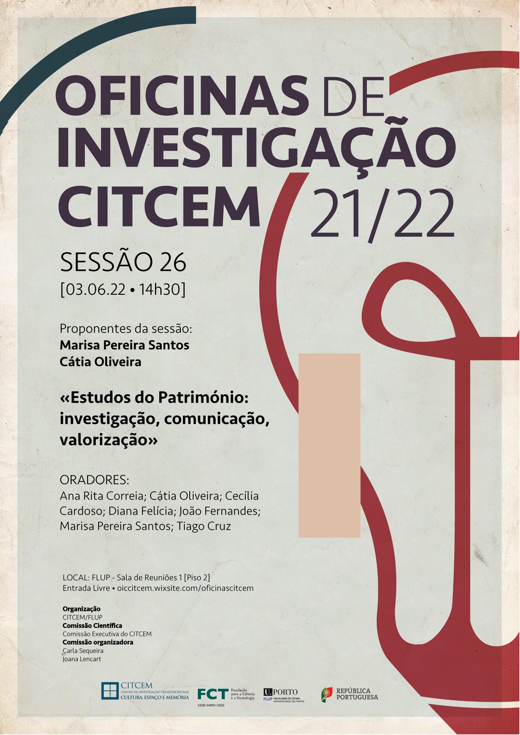 Session proponents: Marisa Pereira Santos (Material and Immaterial Patrimony) and Cátia Oliveira (Material and Immaterial Patrimony)