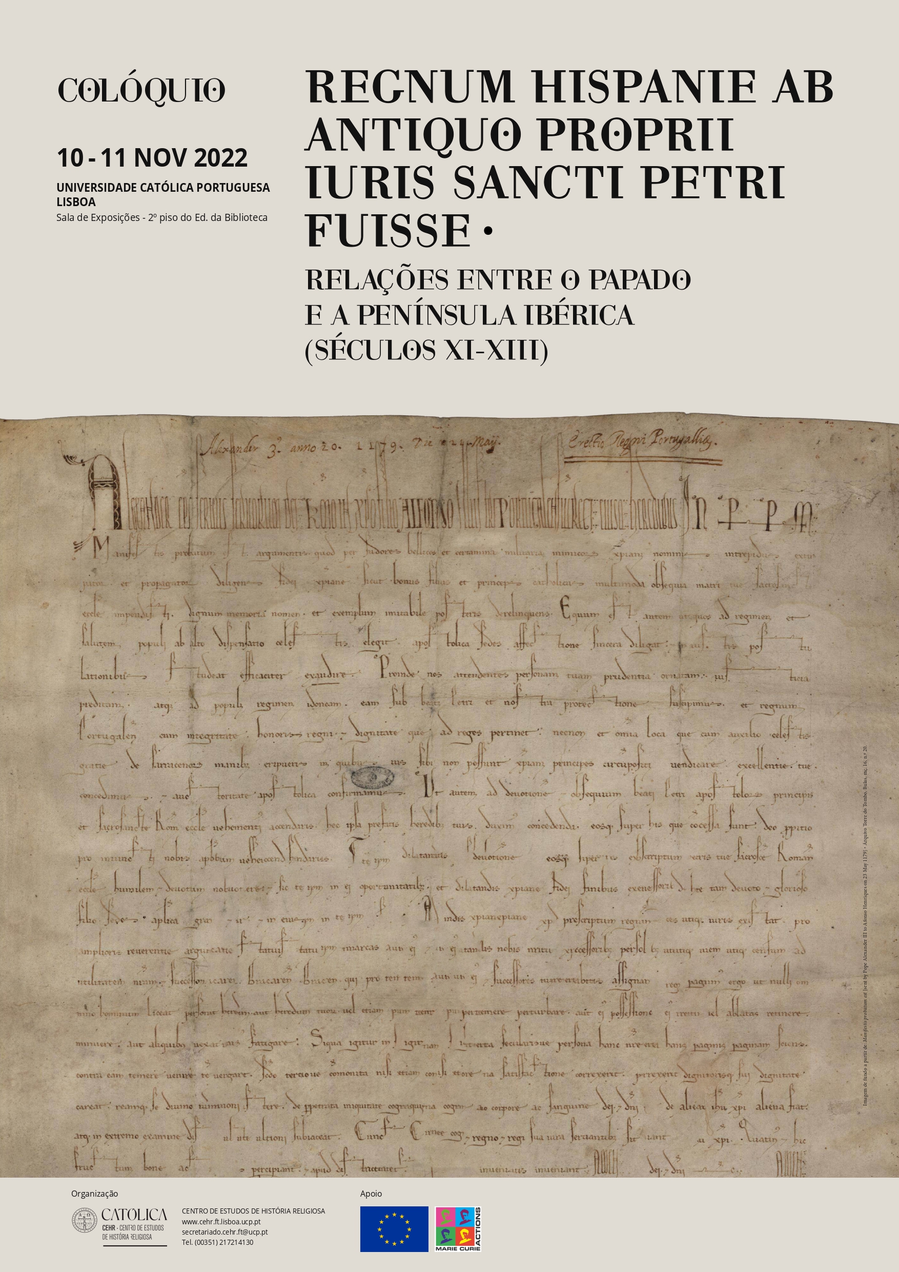 At a time when the recomposition of political powers has once again become a central issue on a European scale, the present colloquium proposes a revisiting of a past that, albeit distant, has proved decisive in shaping and consolidating the political structures of the European West. In effect, between the 11th and 13th centuries, the great lines of force that guided the permanent construction and reconstruction of the various European identities were developed. One of the greatest examples is the affirmation of the Roman Papacy and the multiple consequences that resulted from it on all the ecclesiastical and lay institutions of Latin Christendom. In this sense, the study of particular cases, more or less extended, more or less complex, has allowed us to reconstruct and evaluate the flows of the relations that, gradually, were established between the Roman Curia and several states of the European “periphery”. This is precisely the privileged subject of this colloquium, developed largely within the scope of the project “RAP – Sub beati Petri et nostra protectione suscipimus: Re-framing the relations between Rome and the kingdoms of Portugal and Aragon (eleventh-thirteenth centuries)“, developed with the support of a Marie Sklodowska-Curie grant.