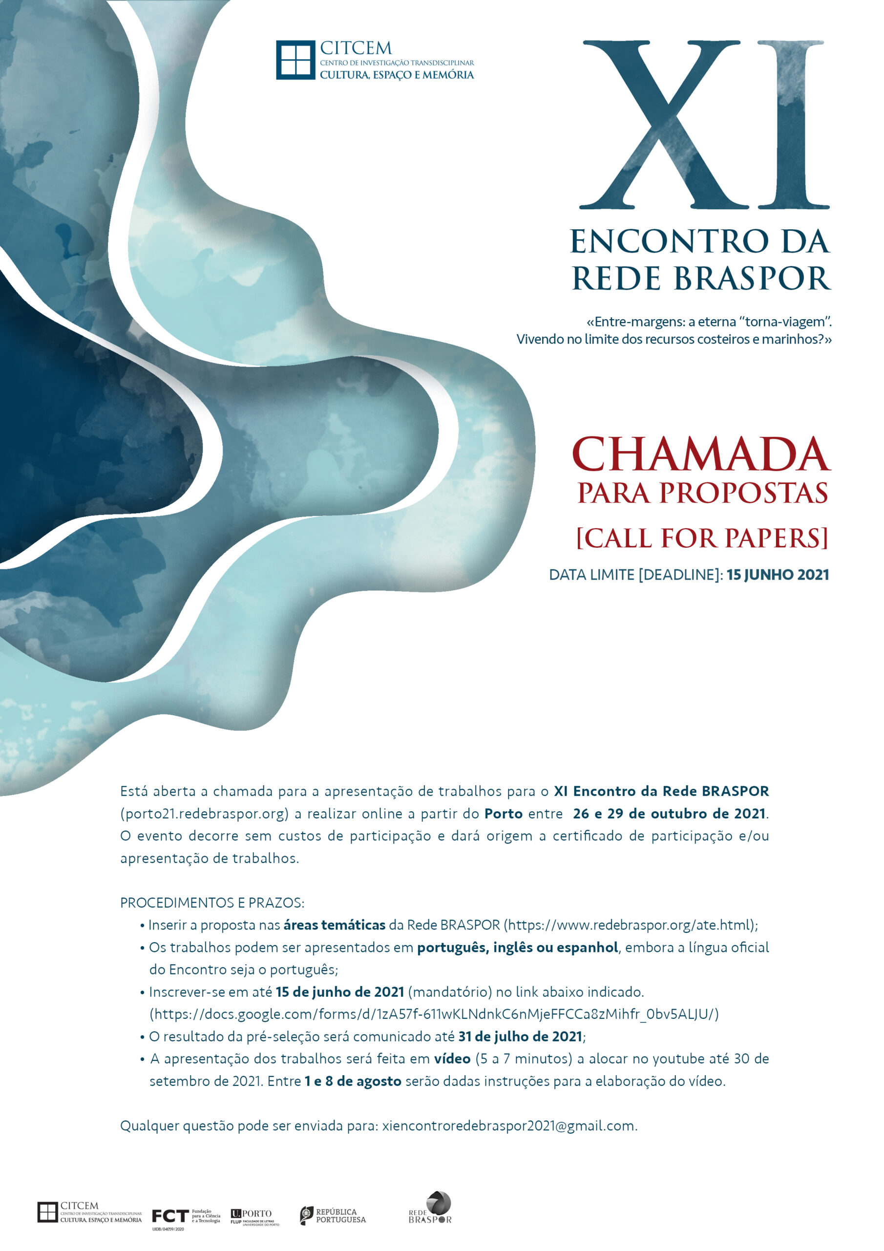 The call for papers for the XI BRASPOR Network Meeting (porto21.redebraspor.org) to be held online from Porto between October 26 and 29, 2021 is now open.
